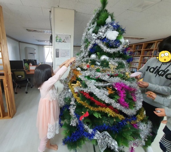산타할아버지의 선물을 기다리며 우리 꼬마 친구들이 크리스마스 트리를 만들었습니다~
