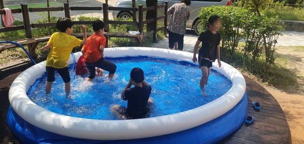길고 긴 장마로 인해 개장하지 못했던 물놀이장을 드디어 개장했습니다.