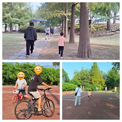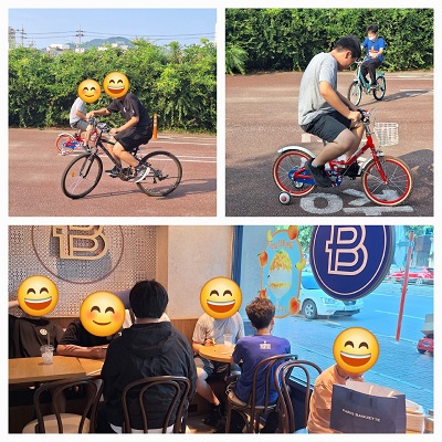 - 호0이는 재미있다고 더 타고 싶어하였지만, 삼십여분 자전거를 타던 형님들이 날씨가 너무 더워서 더이상 타지 못하겠다고 포기하여